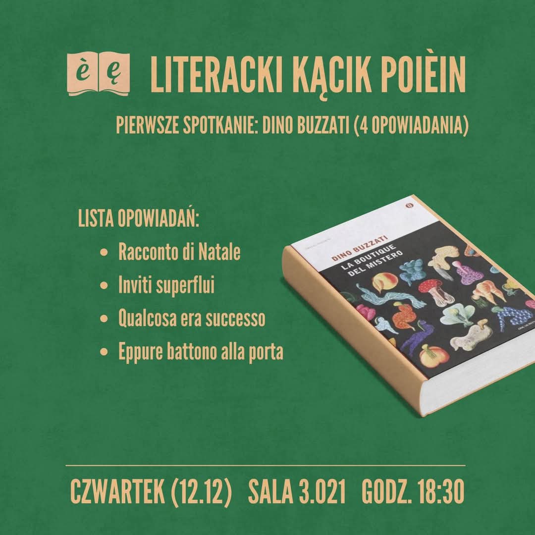 Koło naukowe Poièin zaprasza wszystkich zainteresowanych na cykl spotkań poświęconych wybranym utworom literackim!
